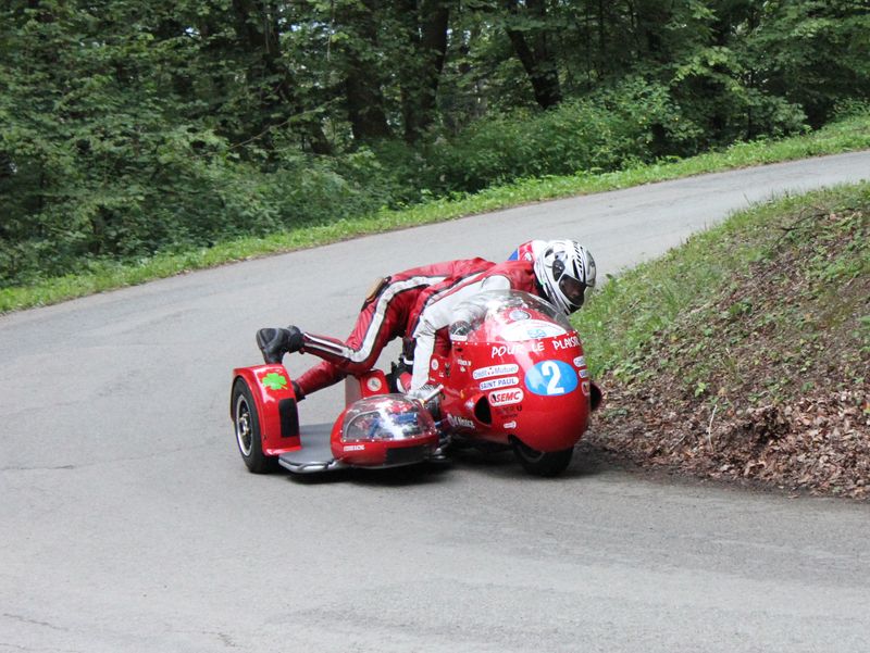 2° Manche : Nous faisons un bon départ. Nous voulons assurer une place de troisième en Vintage pour remporter le titre. Au premier tour le Laverda tombe en panne nous sommes potentiellement 2ème. Au deuxième tour le side à des ratés. Petite frayeur car ils ne persisteront pas pour le reste de la manche. Au 5è tour, nous sommes à deux doigts de faire une sortie de route au virage N°7, nommé "Trop-Tard" !