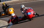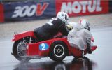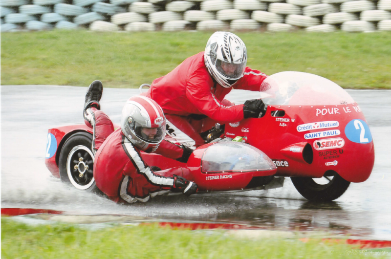 2° Manche : La piste est humide. Après un bon départ, nous taillons la bourre avec un Kawasaki et une bouillotte. La pluie fait son apparition dans les derniers tours de piste ainsi que les pannes pour la plupart des équipages. Ne voulant pas être en reste, notre side commence aussi à ratatouiller. Nous finirons 8ème scratch et deuxième vintage après l'abandon du champion en titre sur son Laverda.