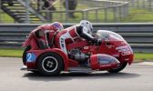 1° Manche : Nous partons bien et tentons tant bien que mal, de suivre le Laverda mais les deux virages paraboliques à droite sont un vrai handicap. Nous terminons cette manche 2ème en Vintage et 13ème scratch. Pendant la course nous sommes étonnés de voir Dominique et Patricia avec leur fidèle side Raymonde sur le bas côté. Arrêtés au 4ème tours en raison d’une trop grande lenteur et pour ne pas mettre en péril le side en tête de course.